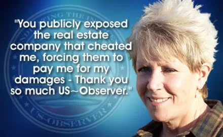 Had Century 21 provided the court with a fraudulent document? Mysteriously the escrow file had disappeared and even after supposed advanced searches, First American reported they couldn’t find it and that they wouldn’t be able to help Ms. Acosta further. First America Title Company’s attitude in and of itself begs for an investigation into possible fraud and collusion. Attorney Foster Glass claimed in his response to the Motion for Reconsideration, “The evidence we have suggests these documents may have been fabricated and altered after the defendants received the Judge’s opinion following the hearing on January 31, 2005. Judge Schiveley denied Century 21’s “Motion for Reconsideration” on March 14, 2005 stating, “There do appear to be disturbing differences between the exhibits attached to the “Motion for Reconsideration.” The court is not prepared to say that any documents have been altered or in some other way prepared for the Motion to Reconsider because the court does not have to.” Amazing! Now Ms. Acosta can have her day in court where Century 21 will definitely leave with much egg on their face and a well deserved, large judgment against them. Corporations like Century 21 will soon learn that they can’t simply take their clients money, cheat them and then basically tell them to go to hell…at least not when the US~Observer is involved.