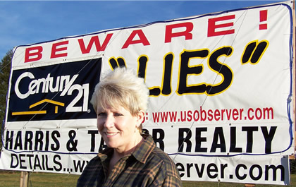 Huntington should donate some time to the US~Observer in exchange for us teaching him to properly investigate and print facts as opposed to lies. As for Ms. Acosta she recently informed us that she intends to keep her sign up until Harris & Taylor Century 21 Real Estate Company is held accountable. Acosta stated, “if this sign isn’t large enough I’ll purchase one that is.” As for threats from the company of them filing a law suit against Ms. Acosta for posting the sign she says she is quite ready.